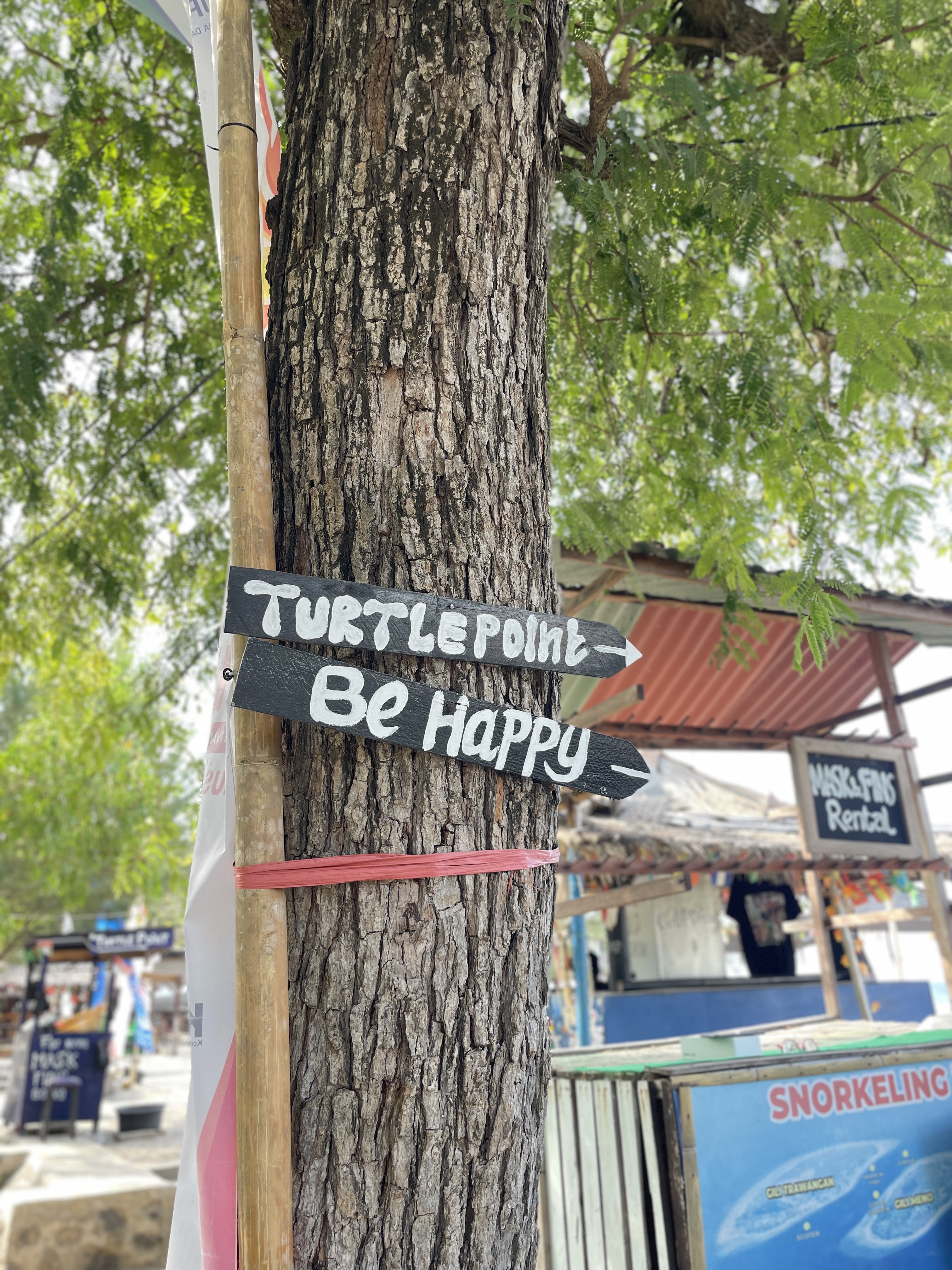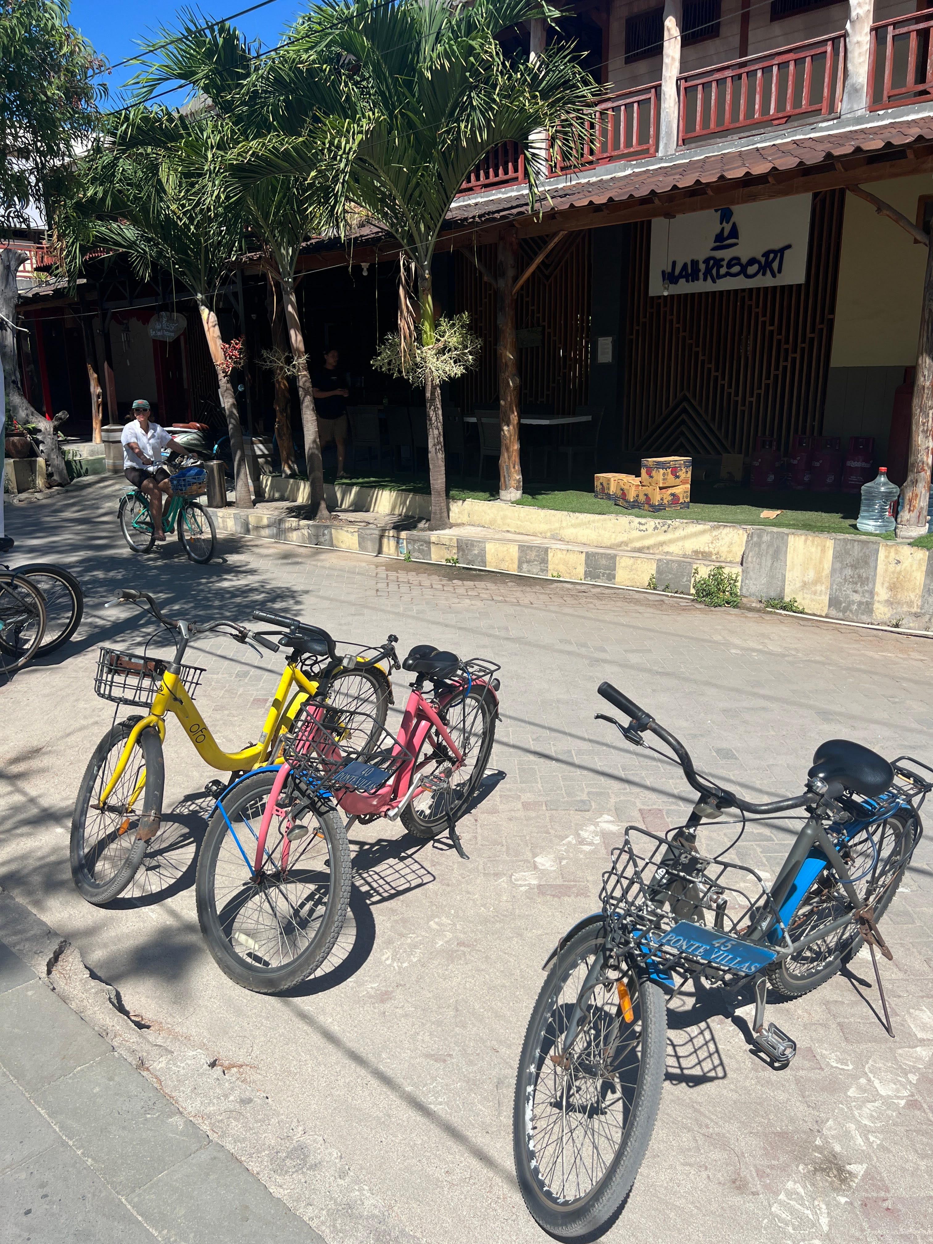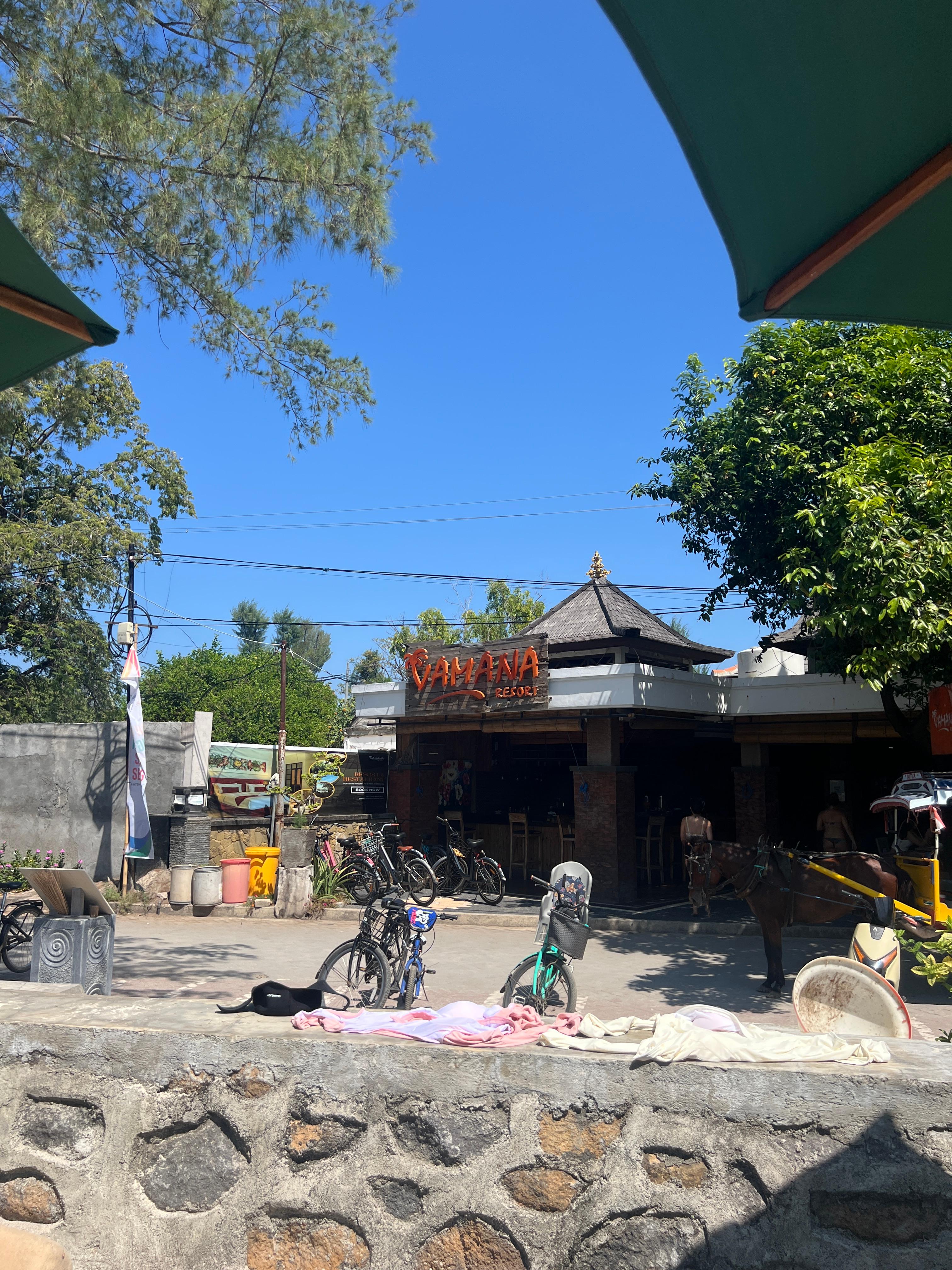 길리에 와본 친구가 말한대로 와 리조트 (Wah Resort) 앞에 자전거를 세우고 해변으로 향하면 그곳이 바로 거북이들이 많이 있는 지점이다.